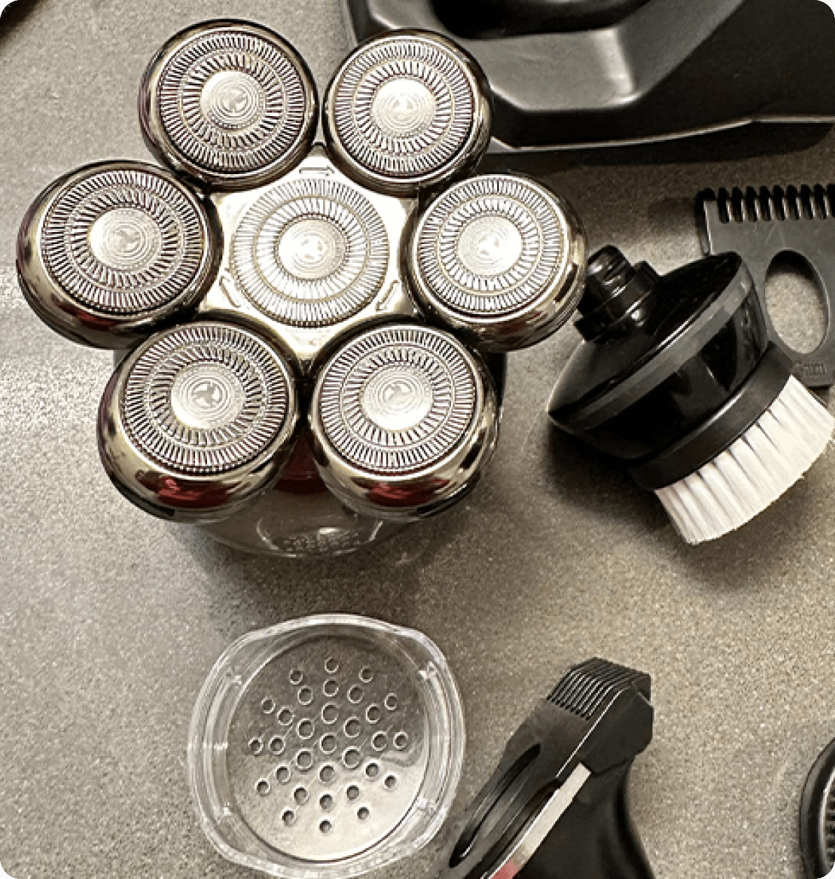 Premium wireless head shaver with 7 ultra-sharp blades that deliver a smooth, irritation-free shave.